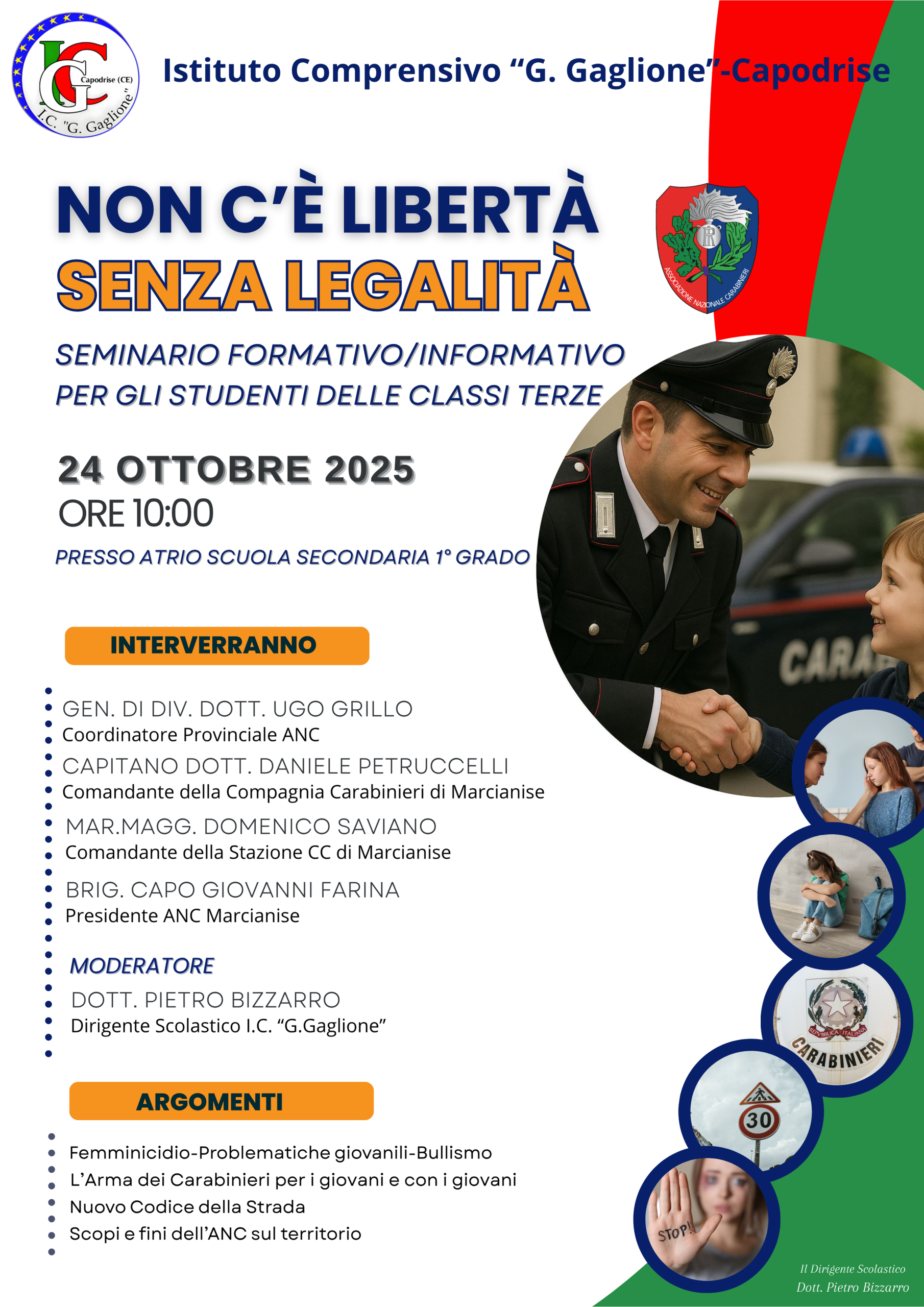 Incontro “Non c’è libertà senza legalità” organizzato nell’ambito del Progetto Nazionale di educazione alla cittadinanza e alla legalità, che vede impegnate l’Arma dei Carabinieri e la Scuola.